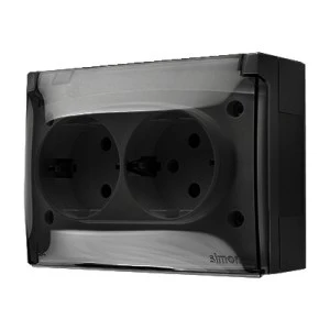 Simon Aquaclick Gniazdo IP44, Schuko, podwójne kompaktowe, klapka transparentna czarny ACGSZ2/49A