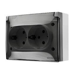 Simon Aquaclick Gniazdo IP44, Schuko, podwójne kompaktowe, klapka transparentna szary ACGSZ2/16A