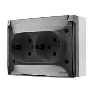 Simon Aquaclick Gniazdo IP44, Schuko, podwójne kompaktowe, klapka transparentna, z przesłonami szary ACGSZ2Z/16A