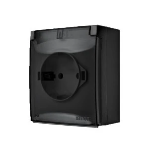 Simon Aquaclick Gniazdo IP44, Schuko, pojedyncze, szybkozłącza, klapka w kolorze czarny ACGSZ1C/49