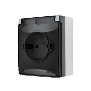 Simon Aquaclick Gniazdo IP44, Schuko, pojedyncze, szybkozłącza, klapka transparentna szary ACGSZ1C/16A