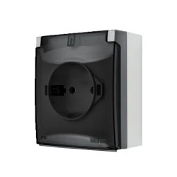 Simon Aquaclick Gniazdo IP44, Schuko, pojedyncze, szybkozłącza, klapka w kolorze, z przesł. torów prądowych szary ACGSZ1CZ/16