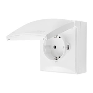 LOGI Gniazdo hermetyczne z klapką 2P+Z IP44 Schuko śrubowe 16A 250V Biały 25086