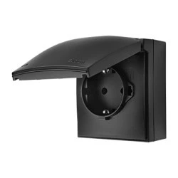 Simon Aquaclick Gniazdo IP44, Schuko, pojedyncze, szybkozłącza, klapka w kolorze czarny ACGSZ1C/49