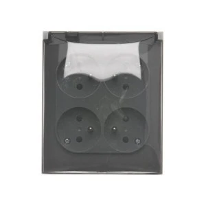 Simon Aquaclick Gniazdo natynkowe, 4-krotne z uziemieniem, klapka transparentna, IP44, 16A 250V ciemnoszary ACGZ4/18A
