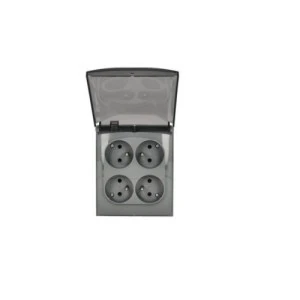 Simon Aquaclick Gniazdo natynkowe, 4-krotne z uziem., klapka transp. z przesłonami, IP44, szybkozłącza ciemnoszary ACGZ4CZ/18A