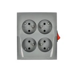 Simon Aquaclick Gniazdo natynkowe, 4‑krotne z uziemieniem, z wbudowanym wyłącznikiem, IP20, zaciski ciemnoszary ACGZN4W1/18