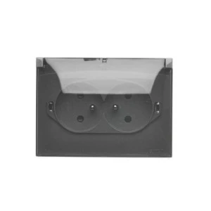 Simon Aquaclick Gniazdo natynkowe, podwójne kompaktowe z uziem., klapka transparentna z przesł., IP44 ciemnoszary ACGZ2Z/18A