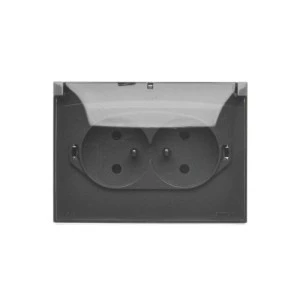 Simon Aquaclick Gniazdo natynkowe, podwójne kompaktowe z uziem., klapka transparentna z przesł., IP44 ciemnoszary ACGZ2Z/18A