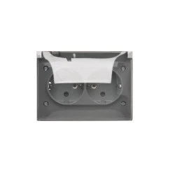 Simon Aquaclick Gniazdo natynkowe Schuko, podwójne kompakt., klapka transp., z przesłonami, IP44, zaciski śrubowe ciemnoszary