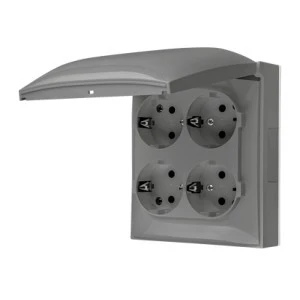 Simon Aquaclick Gniazdo Schuko 4-krotne IP44, klapka w kolorze szary ACGSZ4/16