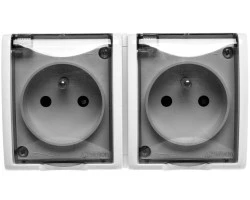 HYDRO Gniazdo hermetyczne podwójne z/u IP44 z klapką dymną białe 121436