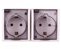 Simon Aquarius Gniazdo hermetyczne podwójne z/u IP54 z klapką transparentną białe AQGZ1-2/11a