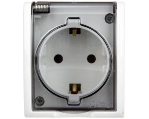 Simon Aquarius Gniazdo hermetyczne pojedyncze z/u IP54 z klapką transparentną białe AQGZ1/11a