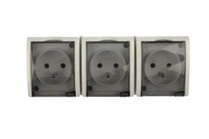 Simon Aquarius Gniazdo hermetyczne potrójne z/u IP54 z klapką dymną białe AQGZ1‑3/11a