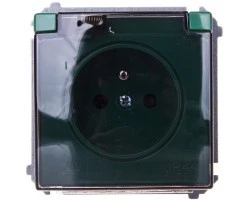 Simon Basic Gniazdo bryzgoszczelne z/u IP44 z przesłoną torów i klapką dymną zielone BMGZ1Bz.01/33a