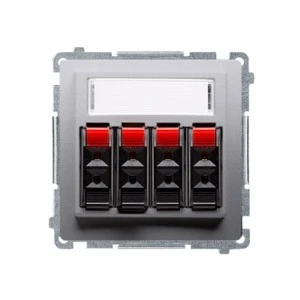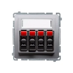 Simon Basic Gniazdo głośnikowe 4‑krotne z polem opisowym srebrny mat BMGL34.01/43