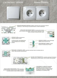 Dodatkowe informacje: produkt wymaga dokupienia ramki z serii Simon Basic, produkt w wersji bez metalowej plakiety centralnej - montaż bezpośredni