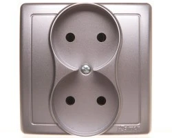 LOGI Gniazdo podwójne 2x2P kompletne śrubowe 16A 250V Srebrny 25214