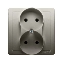 LOGI Gniazdo podwójne 2x2p+Z Schuko kompletne śrubowe 16A 250V Srebrny 25213