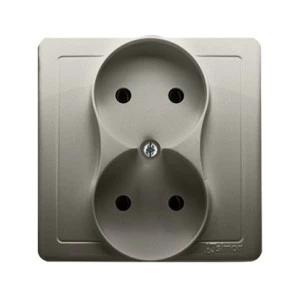 LOGI Gniazdo podwójne 2x2P kompletne śrubowe 16A 250V Srebrny 25214