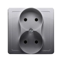 LOGI Gniazdo podwójne 2x2p+Z Schuko kompletne śrubowe 16A 250V Srebrny 25213