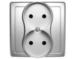 LOGI Gniazdo podwójne 2x2P kompletne śrubowe 16A 250V Srebrny 25214