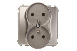 SONATA Gniazdo podwójne z/u z przesłonami srebro mat GP-2RZP/38