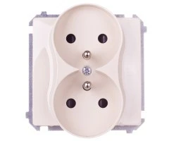 AS Gniazdo podwójne z/u z przesłonami ecru GP-2GZP/27