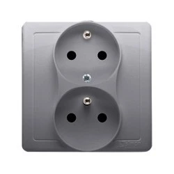 Simon Basic Gniazdo podwójne z/u z funkcją niezmienności faz z przesłonami 16A 250V srebrny mat BMGZ2TZ/43