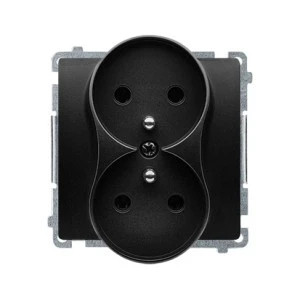 Simon Basic Gniazdo wtyczkowe podwójne bez uziemienia (moduł) z przesł. torów prąd.,16A, 250V, zac. śrubowe czarny BMG2MZ.01/49