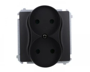 Simon Basic Gniazdo wtyczkowe podwójne bez uziemienia (moduł),16A, 250V, zaciski śrubowe czarny BMG2M.01/49