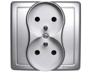 Simon Basic Gniazdo wtyczkowe podwójne z uziemieniem kompletne z przesłonami 16A 250V srebrny mat BMGZ2z/43