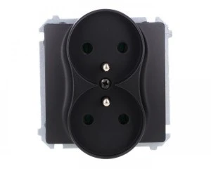 Niloe Step Gniazdo zasilające podwójne 2x2P+Z do ramek wielokrotnych, zaciski śrubowe, bez przesłony styków czarny 863532