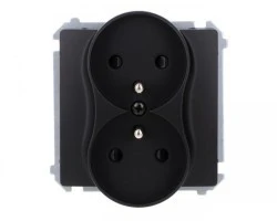 SONATA Gniazdo podwójne z/u z przesłonami czarny metalik GP-2RZP/33