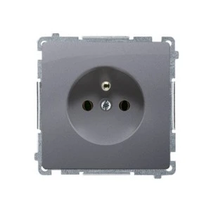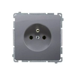 Simon Basic Gniazdo wtyczkowe pojedyncze z uziemieniem 16A 250V z przesłonami, szybkozłącza, srebrny mat BMGZ1CZ.01/43