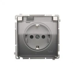 Simon Basic Gniazdo wtyczkowe Schuko do wersji IP44 (moduł) 16A, 250V~,zaciski śrubowe srebrny mat. Klapka transparentna BMGSZ1B