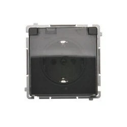 Simon Basic Gniazdo wtyczkowe Schuko do wersji IP44 z przesłonami (moduł) 16A, 250V~,zaciski śrubowe grafit matowy. Klapka trans