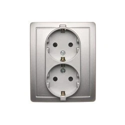 Simon Basic Gniazdo wtyczkowe z uziemieniem Schuko podwójne z przesłonami srebrny mat BGSZ2Z/43