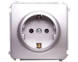 Simon Basic Gniazdo wtyczkowe z uziemieniem Schuko z przesłonami torów 16A 250V srebrny mat BMGSz1z.01/43