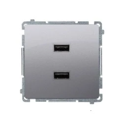Simon Basic Ładowarka USB podwójna inox, metalizowany BMC2USB.01/21
