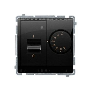 Simon Basic Regulator temperatury z czujnikiem wewnętrznym, 16A, 230V. Montaż gniazda na wkręty do puszki czarny BMRT10W.02/49