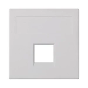 Płytka Simon Connect S500 przeznaczona do montażu pojedynczego modułu teleinformatycznego RJ; umożliwia instalację insertu 3M Volition OCK bez osłon. Produkt stosowany jako element wykończeniowy punktów sieciowych w instalacjach telekomunikacyjnych i sieciach LAN.