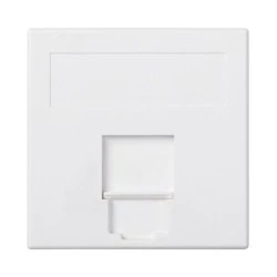 Płytka frontowa Simon Connect S500 przeznaczona do montażu jednego gniazda RJ (teleinformatycznego) z osłoną typu BELGENCDT; stosowana w instalacjach sieciowych i multimedialnych, kompatybilna z ramkami serii S500.