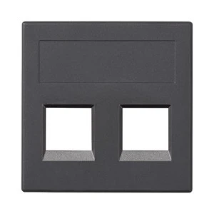 Płytka Simon Connect S500 przeznaczona do aplikacji niskoprądowych, wyposażona w dwa gniazda RJ w konfiguracji modułowej; wersja bez osłon w kolorze szary grafit przeznaczona do montażu w systemie ramkowym S500.