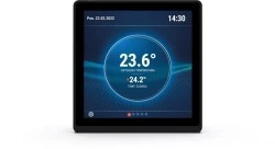 Panel kontrolny CP-04 pełni rolę wielozadaniowego urządzenia. Dzięki niemu możemy wyświetlić aktualną prognozę pogody, sprawdzić jaka jest temperatura w pomieszczeniu, w którym jest zainstalowany (możliwość podłączenia czujnika temperatury powietrza i czujnika temperatury podłogi) oraz ustawić skróty ulubionych scen. Panel pełni więc funkcję pogodynki, regulatora temperatury oraz włącznika scen. Wszystko to sterowane jest z 4-calowego kolorowego dotykowego wyświetlacza.