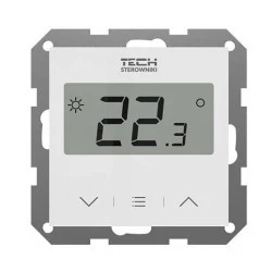 Bezprzewodowy regulator FR-S2 wyposażony jest w czytelny wyświetlacz z dotykowymi przyciskami. Dodatkowo posiada czujnik wilgotności powietrza.
