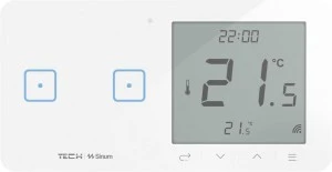 Rozbuduj swój system o inteligentny bezprzewodowy regulator temperatury! Regulator wyposażony jest w duży podświetlany wyświetlacz z dotykowymi przyciskami. Dodatkowo posiada czujnik wilgotności powietrza, a także umożliwia sterowanie temperaturą podłogi dzięki możliwości podpięcia przewodowego czujnika podłogowego NTC (brak w zestawie).