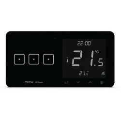 Rozbuduj swój system o inteligentny bezprzewodowy regulator temperatury! Regulator wyposażony jest w duży podświetlany wyświetlacz z dotykowymi przyciskami. Dodatkowo posiada czujnik wilgotności powietrza, a także umożliwia sterowanie temperaturą podłogi dzięki możliwości podpięcia przewodowego czujnika podłogowego NTC (brak w zestawie).