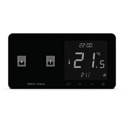 Rozbuduj swój system o inteligentny bezprzewodowy regulator temperatury! Regulator wyposażony jest w duży podświetlany wyświetlacz z dotykowymi przyciskami. Dodatkowo posiada czujnik wilgotności powietrza, a także umożliwia sterowanie temperaturą podłogi dzięki możliwości podpięcia przewodowego czujnika podłogowego NTC (brak w zestawie).